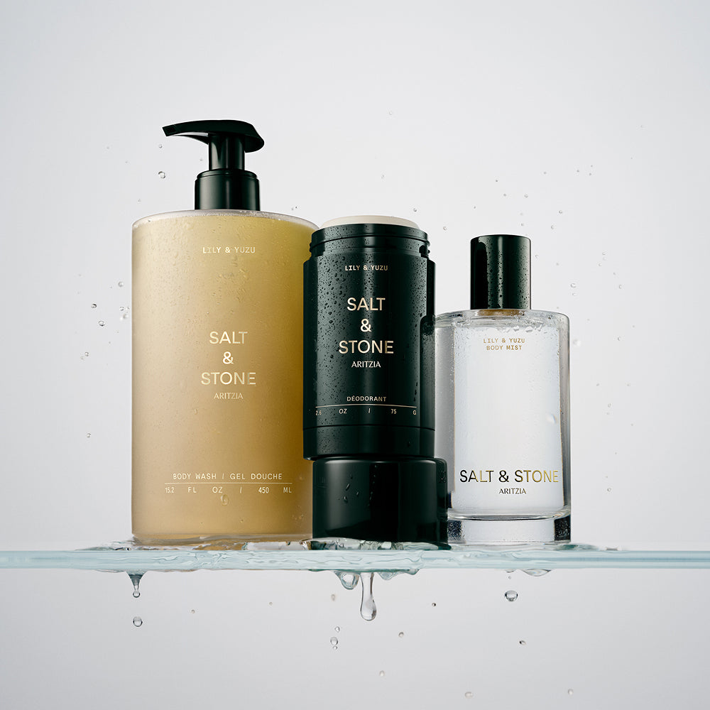 Salt & Stone's Neroli & Basil Set, including Body Wash, Body Lotion & Aluminum-Free Deodorant.
