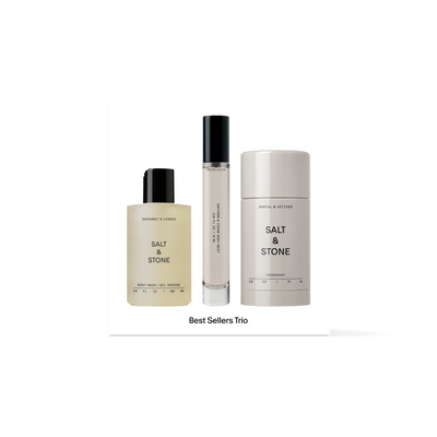 Discover three award-winning essentials in their most-loved scents—a full-sized Santal Deodorant, mini Saffron Body Mist and mini Bergamot Body Wash.